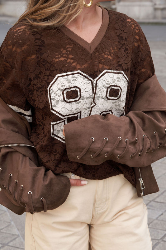 V-Neck Lace American T-shirt