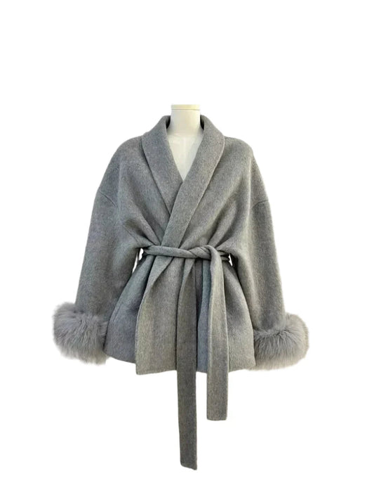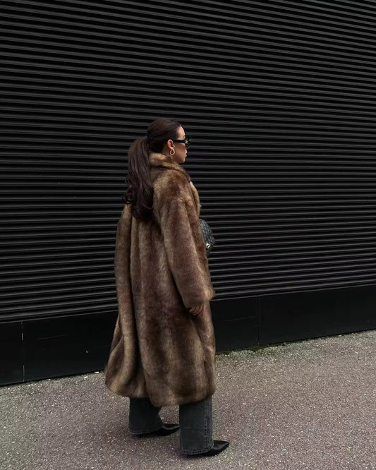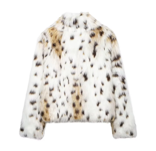 Eleganter Kunstpelzmantel im Schneeleoparden-Design
