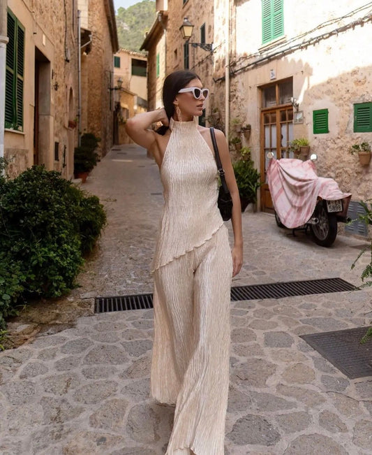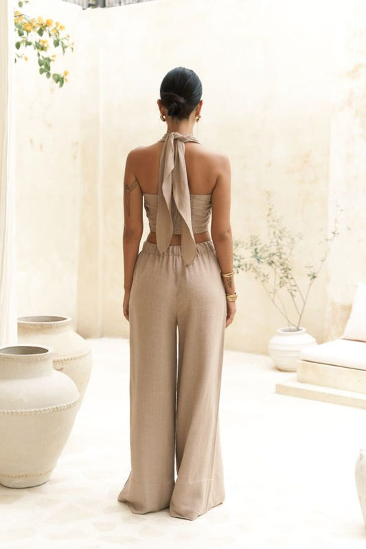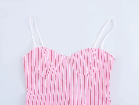 Zweiteiliges Set mit Bustier-Top und weiter Hose in Rosa mit Streifen
